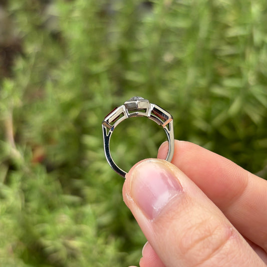 Hexagon Three Stone Salt and Pepper Diamond Ring
